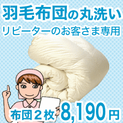 【送料無料】羽毛布団クリーニング・丸洗い(フレスコeリピート) 2枚用 リピーターさま用【宅配サービス】 価格: 8,190円 レビュー評価: 0.0 レビュー数:0 ご利用にあたっての注意事項当ページは、すでにフレスコeパックを一回以上ご利用いただいたことがあるお客さま(リピーターさま)専用コースです。発送キットはお届けいたしますが、布団袋は含まれません。お手持ちのフレスコ社専用布団袋を再度ご利用の上、発送手続きをしていただきますよう、お願い申し上げます。●ご利用の前に必ず、洗える布団、洗えない布団の確認をお願いいたします。●発送キットのお届け先と、仕上がった商品のお届け先は同じ住所でご注文をお願いします。●キットの集荷につきましては、お客さまのほうから、直接ヤマト運輸にご依頼をしてください。●発送準備にあたりまして、お布団に安全ピンで名札をとりつけていた Supported by 楽天ウェブサービス |